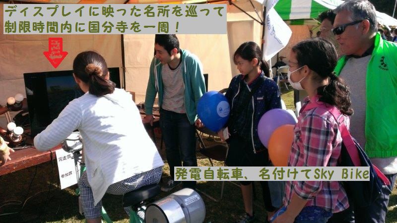 第34回 国分寺まつりに参加しました。昨年に引き続き、今年も、国分寺商工会 工業部会と協力して、『発電自転車』、名付けてSky Bike(スカイバイク)を出品しました。